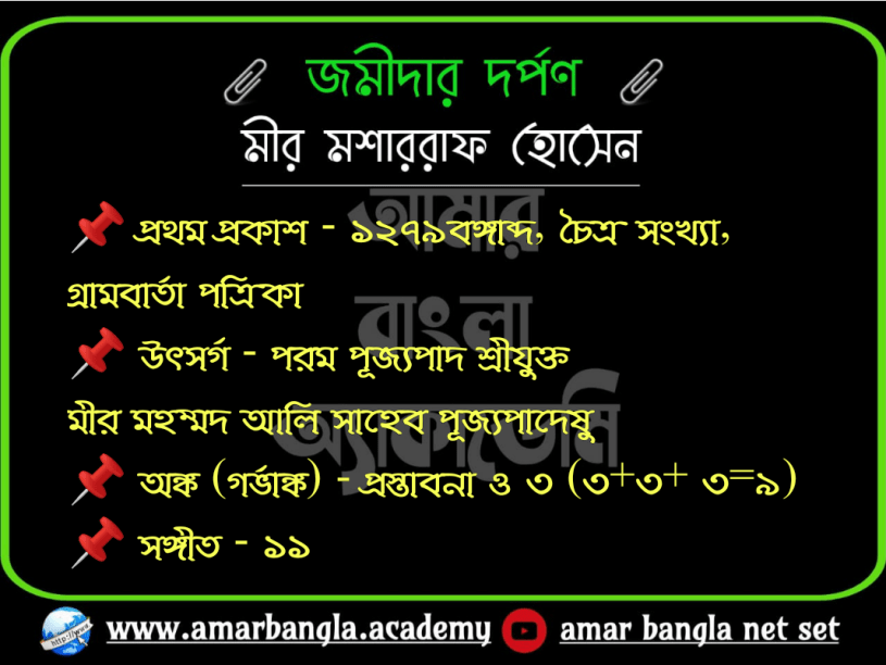 ● ‘জমীদার দর্পণ’ নাটকের অঙ্ক সংখ‍্যা – ৩।