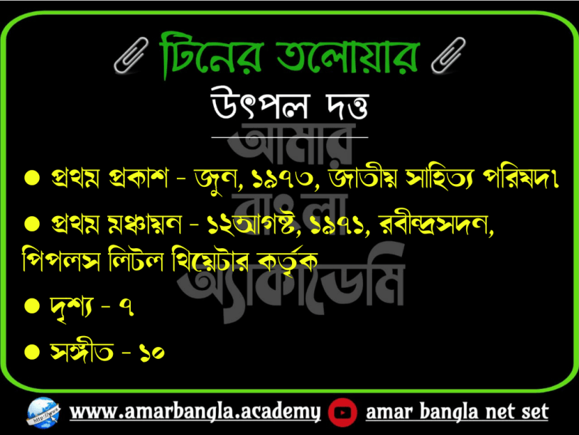 ● ‘টিনের তলোয়ার’ নাটকটির রচনা ও পরিচালনা করেছেন উৎপল দত্ত।