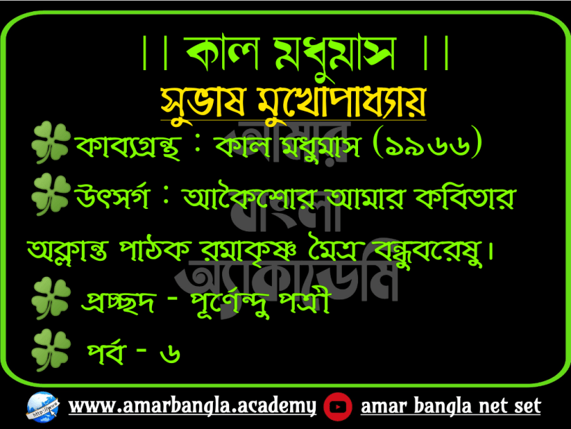 ১) ‘কাল মধুমাস’ কবিতাটি কোন কাব্যগ্রন্থের অন্তর্গত ?